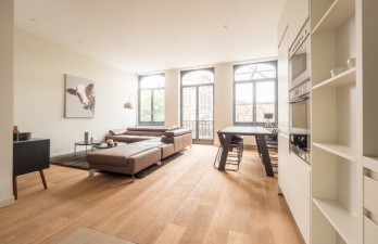 Situé sur la ravissante Place Saint-Antoine (quartier de la Chasse), dans un immeuble entièrement remis à neuf, très bel appartement offrant +/-85m² habitables full rénové (1ére occupation!!). Séjour +/-30m², orienté plein sud avec balcon. Cuisine américaine full équipée. Hall de nuit. Toilette séparée. Belle salle de bains en marbre (avec douche séparée). Deux chambres à l'arrière de +/-9m² et +/-15m². Chaudière gaz individuelle. Double vitrage partout. Parquet partout. Electricité aux normes. Ascenseur neuf. Petite copropriété!! PEB en-cours. A voir absolument!!