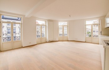COMPROMIS SIGNE!!! Dans un bel immeuble de caractère style "hausmannien" datant de 1902, bel appartement 1 chambre entièrement rénové au 3è étage offrant +/-60m² habitables. L'immeuble a été totalement remis à neuf (ascenseur neuf, nouvelle toiture, façade recimentée, nouveaux communs,...). Agencement: hall d'entrée, porte semi blindée, toilette invités, séjour plein sud +/-30m²(avec balcon sur tout le pourtour), cuisine américaine full équipée avec buanderie. 1 chambre de 12m² avec salle de douche attenante. Parquet en chêne partout. Vidéophonie. Chaudière individuelle gaz. Châssis en bois et double vitrage partout. Cave privative. Peb C+. Infos et visites: 0478.548.302