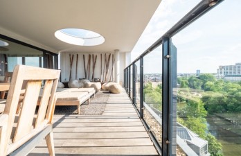 Avec une vue imprenable sur le Parc Leopold, magnifique triplex "penthouse" au 9è, 10è et 11è étage dans un immeuble de standing construit en 2011. A quelques pas seulement du parc du Cinquantenaire et à proximité immédiate des institutions européennes. Il offre une superficie habitable (SEM) de +/-202m² et une grande terrasse de 44m² parfaitement orientée sud sud-ouest avec une vue panoramique époustouflante. Au niveau inférieur: masterbedroom 18m² avec sa salle de bains en-suite, chambre 14m² et 3è chambre 12m² (aménagée en dressing), 1 salle de douche séparée. Au niveau intermédiaire: vastes et lumineuses réceptions +/-50m² avec une cuisine américaine full équipée Smeg + office (buanderie), vestiaire + toilette visiteurs, au niveau supérieur: bureau 14m² donnant sur la terrasse. Finitions de très haute qualité, parquet en chêne massif,nombreux rangements et placards. Vidéophonie à chaque étage. Chauffage collectif au gaz. Electricité en conformité. PEB D-. 2 emplacements de parking en option. Les superficies sont données à titre indicatif. Infos et visites: 0478,548,302