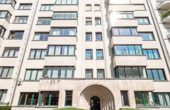 Dans le quartier très recherché de l'avenue F. Roosevelt (sur 1000 Bruxelles), avenue de l'Orée, à proximité immédiate du Bois de la Cambre, au rez-de-chaussée d un très bel immeuble art déco (1935), élégant appartement de caractère de 113m² habitables (suivant PEB). Il présente de belles et lumineuses réceptions d environ 50m², orientées sud (vaste hall d entrée, séjour, salle à manger et bow-window). Belle hauteur sous plafond de près de 3 mètres, parquet à bâtons rompus dans tout l?appartement, très bien conservé. Deux chambres (15m² et 10m²) donnant à l arrière sur le jardin, une salle de bains, une toilette séparée et cuisine donnant sur la terrasse et le jardin. Grand débarras / dressing. Grand jardin à jouissance privative de 90m² (profitant d un bon ensoleillement l?après-midi et en soirée). Magnifique vue arrière très arborée sans vis-à-vis ! Chaudière collective gaz récente (2018). Les charges (provision de +/-380 euros par mois), comprennent tout : chauffage, eau, communs, fonds de réserve. Cave privative au sous-sol. Garage en option (+30.000 euros). Electricité en conformité. PEB F. A remettre au goût du jour.