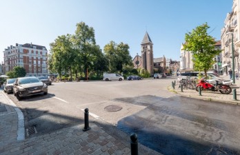 OFFRE SANS CONDITION SUSP ACCEPTEE STOP VISITES; Situé à 2 pas de la place Brugmann, dans un immeuble érigé en 1957, bel appartement au 4è et avant dernier étage, très lumineux, avec de beaux espaces, offrant 94m² habitables (suivant PEB). Lumineuses réceptions, parquet. Cuisine avec balcon. Hall entrée, vestiaire, toilettes visiteurs. Deux belles chambres donnant à l'arrière avec terrasse de 4m². Salle de bains indépendante. Double vitrage partout. PEB E- (projet réfection et isolation toiture en-cours: impact au niveau PEB: D). Charges comprenant tout (syndic, communs, eau et chauffage privatifs): +/-250 euros/mois. Chauffage collectif gaz, système cogénération. Cave privative au sous-sol. Garage en option dans l'immeuble (+80,000 euros). Dossier complet (PV AG, décomptes charges, RU,...) sur demande.