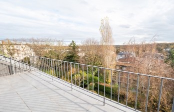 Idéalement situé sur l'une des adresses les plus prestigieuses de Woluwe-Saint-Pierre, ce magnifique penthouse de 95m² habitables se compose comme suit: entrée, porte blindée, lumineuse réception donnant sur une terrasse plein sud (12m²) avec une vue imprenable sur le Chant d'Oiseau, cuisine entièrement équipée, vestiaire, buanderie, débarras, 2 belles chambres de 14m² chacune (avec placards intégrés) se partageant une jolie salle de bains. Rénové par l'architecte d'intérieur Claire Bataille. Très belles prestations. Parquet en chêne massif. Nombreux placards de rangement. Feu ouvert. Vidéophonie. Concierge dans l'immeuble. Une cave privative. Un box de garage (en supplément : 100 euros / mois) au sous-sol et accessible par ascenseur. Toiture refaite et isolée. Peb en-cours. Provision pour les charges communes et chauffage: 200 euros / mois. Un bien unique et exceptionnel à visiter absolument!